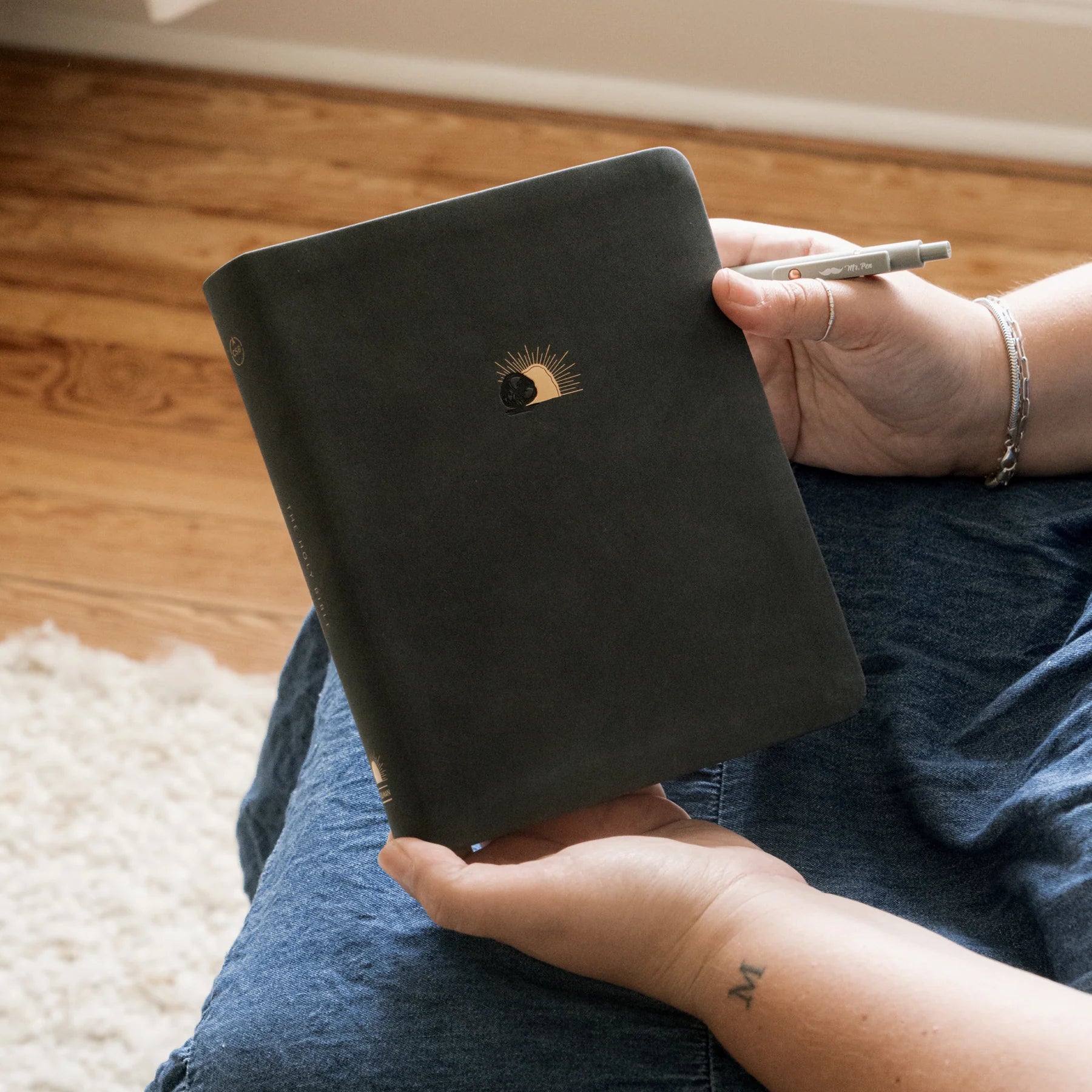 This black leather-like Bible is based on the beloved city of Jerusalem in Israel, where history unfolds in the Old and New Testaments and where the last week of Jesus’s life was spent. May we never forget the unashamed, powerful ministry that took place in the city that saw Jesus's arrest, trial, crucifixion, entombment, and resurrection. A gold-foiled design of Jesus’s open tomb is placed on the cover of this Bible, symbolizing his victory over death and defeating every act of evil that has ever been and will ever be. The back of the Bible features Matthew 28:6, “He has risen just as he said,” a verse that declares the power and sovereignty of God. Our prayer is that this verse reminds you of God’s trustworthy character and the victory he has over your life!